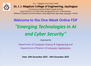 The FDP on Emerging Technologies in Artificial Intelligence and Cyber Security effectively enhanced faculty understanding of current trends, tools, and challenges in both domains. The programme combined theoretical concepts with practical demonstrations, enabling participants to apply AI and cybersecurity knowledge in teaching, research, and institutional practices. Overall, the FDP contributed to faculty upskilling, curriculum enrichment, and preparedness for emerging technological and security challenges